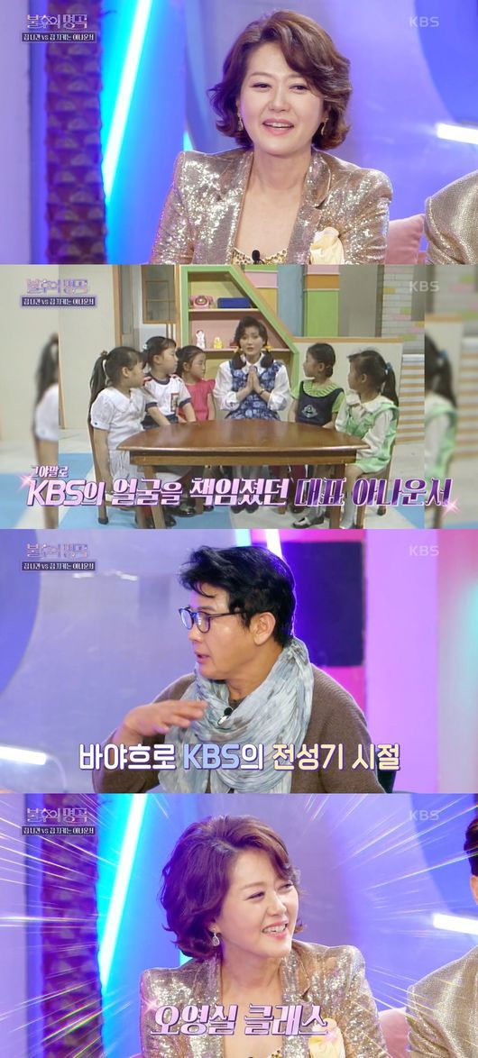 23일 방송된 KBS 2TV 예능 프로그램 ‘불후의 명곡’은 ‘집나간VS집지키는 아나운서’ 특집으로 꾸며졌다. 이에 KBS 15기 아나운서 출신 오영실이 최고참 선배로 출연해 이목을 끌었다.