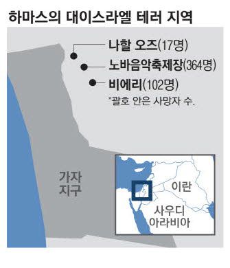 인근에 위치한 노바 음악축제장에는 추모객들 발길이 끊이지 않았다. 핏빛처럼 붉은 아네모네 조형물이 묘지 곳곳에 꽂혀 있었다. 예루살렘·텔아비브 시내에선 생환을 바라는 노란 리본이 가득했으나 이곳에는 추모·존중을 뜻하는 꽃 조형물만 남아 있었다.