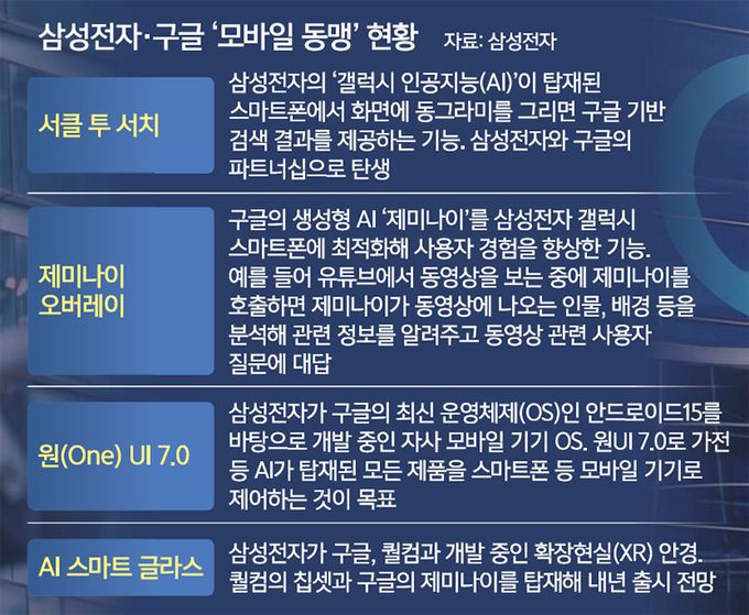 대표적으로 갤럭시 AI의 ‘서클 투 서치’는 구글과의 협업으로 탄생했다. 서클 투 서치는 갤럭시 폰 화면에서 동그라미를 그리면 동그라미 내 정보로 구글 기반 검색 결과를 제공하는 기능으로, 갤럭시 AI를 상징하는 기능으로 꼽힌다. 구글의 제미나이를 갤럭시 폰에 최적화해 사용자 경험을 대폭 향상한 ‘제미나이 오버레이’도 삼성 스마트폰에서 내세우는 AI 기능 중 하나다.