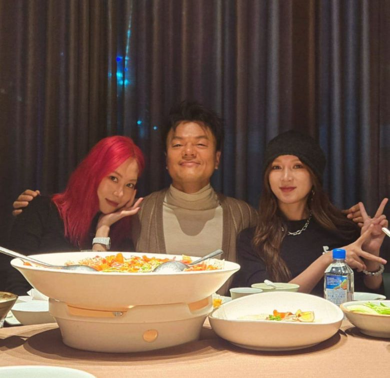 공개된 사진 속에서 박진영은 2010년 자신이 제작한 걸그룹 미쓰에이의 중국인 멤버 페이, 지아와 함께 식사를 하고 있는 모습. 특히 그룹 해체 후 두 멤버가 고향으로 돌아간 지 7년이 지났음에도 박진영은 자신이 구성한 멤버들을 잊지 않고 챙겨 눈길을 끌었다.