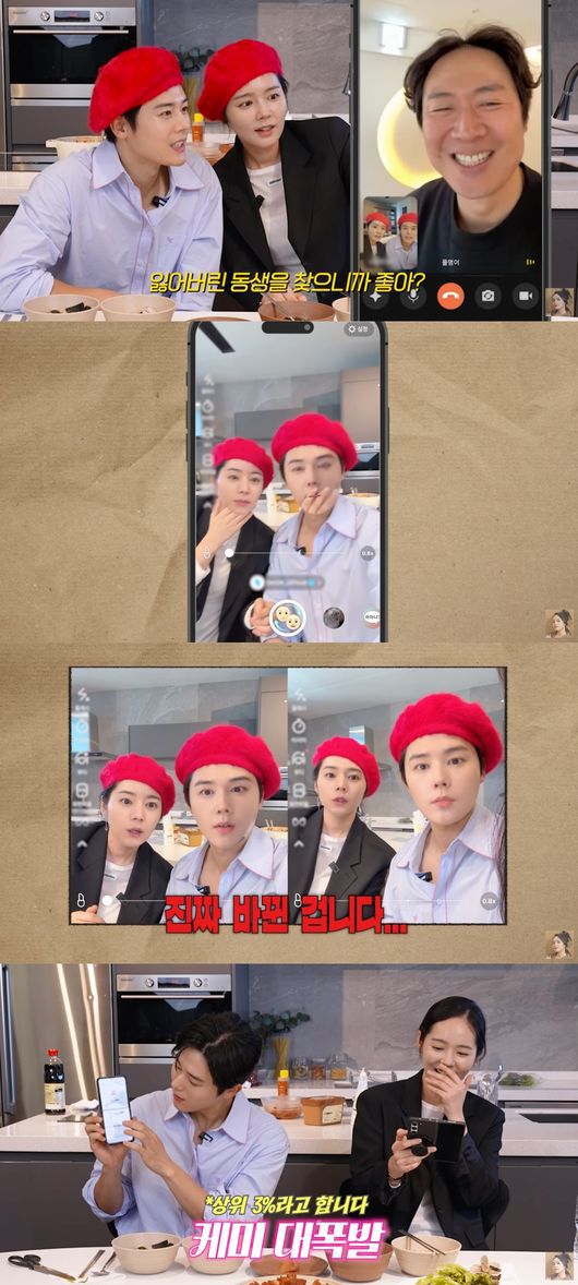 뒤이어 한가인이 남편 연정훈에게 영상통화도 걸었다. 연정훈은 전화를 받자마자 데칼코마니처럼 붙어있는 한가인과 김동준을 보며 웃음을 터트렸다. 그는 “누가 누구야?”라며 웃었고, “잃어버린 동생을 찾으니까 좋아?”라고 너스레를 떨었다.