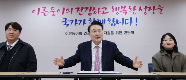 윤석열 대통령이 28일 서울성모병원에서 열린 '이른둥이의 건강한 성장 지원을 위한 간담회'에 참석해 발언하고 있다. 연합뉴스 |