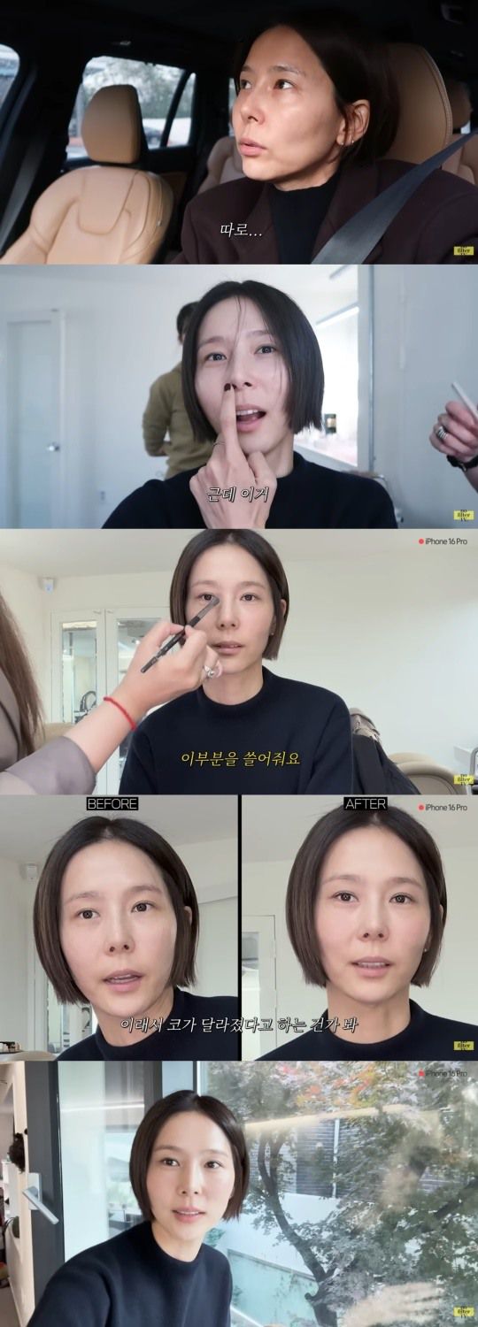 또 눈썹 염색을 하며 김나영은 자신의 얼굴을 보고 민망해하며 "이런 과정이 있었기 때문에 예뻐진 것"이라며 웃어보였다. 또 잔머리를 내 분위기에 변화를 준 뒤 메이크업을 받아봤다. 여러 꿀팁을 전달 받기도 했는데 하이라이터를 보고 김나영은 "이래서 코가 달라졌다고 하는 건가보다"라며 놀라워했다.
