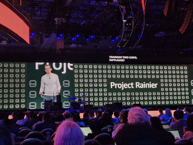 브라운 창립자는 앤트로픽의 차세대 클로드 모델이 AWS의 새로운 클러스터인 레이니어(Rainier) 프로젝트에서 훈련되고 있다는 점도 새롭게 밝혔다. 레이니어 프로젝트는 수십만 개의 트레이니움2 칩이 포함된 클러스터다. 그는 “레이니어 프로젝트가 AI 모델 훈련 속도를 획기적으로 높일 것”이라면서 “이는 최종 사용자인 고객 기업이 더 저렴한 비용으로 더 높은 지능을 갖춘 모델을 더 빠르게 제공받을 수 있음을 의미한다”고 강조했다.