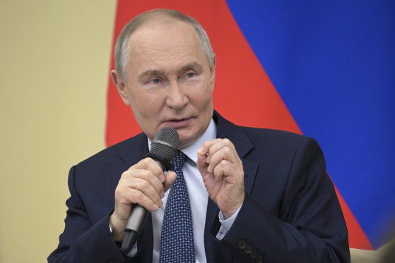 2일(현지시간) 블라디미르 푸틴 러시아 대통령이 러시아 모스크바 외곽 노보-오가료보 관저에서 젊은 과학자들과 만나 연설하고 있다. AP=연합뉴스 |