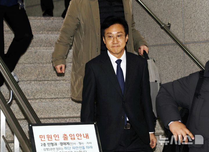 [군산=뉴시스] 강경호 기자 = 공직선거법 위반 혐의로 기소된 신영대 더불어민주당 국회의원이 28일 전북 군산시 전주지법 군산지원에서 열린 선고 공판이 끝난 뒤 취재진의 질문을 피하며 급히 법원 밖을 나서고 있다. lukekang@newsis.com 2024.11.28. |