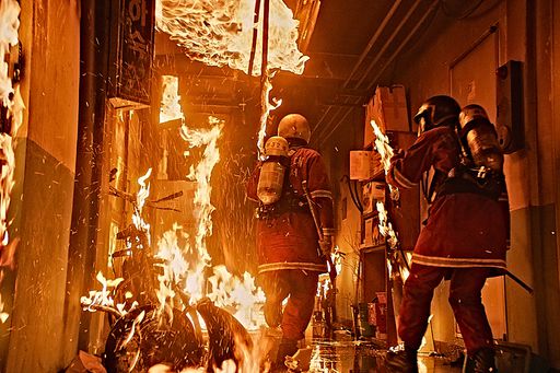 ‘소방관’은 화재 현장의 공포와 막막함을 실감 나게 표현했다. 컴퓨터그래픽(CG)을 최소화하고 실제 불을 피웠다. 화마에 휩싸인 건물 안은 매연으로 칠흑같이 컴컴하고 불길은 사방에서 잡아먹을 듯이 타오른다. 이런 아비규환 속에서 몸 사리지 않고 인명을 구하는 소방관들의 노고가 숭고하게 다가온다. 배우 주원은 “실제 화재현장처럼 연기를 채우니 아예 카메라에 배우들이 나오지 않았다”며 “마음 같아서는 한 치 앞도 안 보일 만큼 표현하고 싶었지만 그러면 화면에 하얗고 꺼멓고밖에 안 나왔을 것”이라고 말했다.