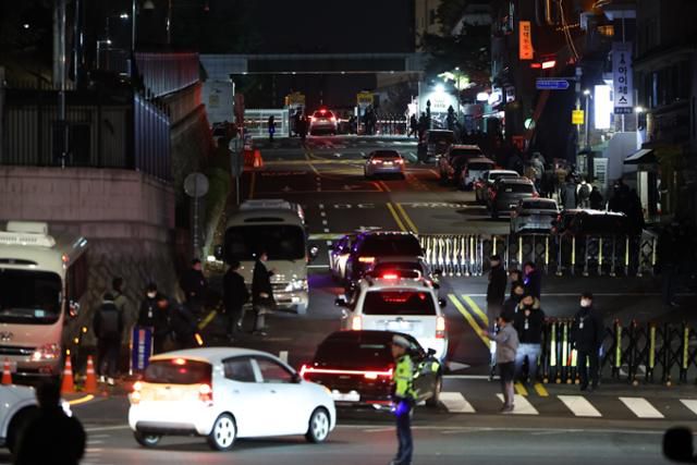 윤석열 대통령이 비상계엄령을 선포한 지난 3일 밤 서울 용산구 대통령실 앞에서 차량들이 진입하고 있다. 뉴시스 |