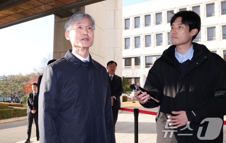 (서울=뉴스1) 김성진 기자 = 조희대 대법원장이 4일 오전 서울 서초구 대법원으로 출근하며 윤석열 대통령의 비상계엄 선포와 관한 취재진의 질문에 답하고 있다. 조희대 대법원장은 전날 윤석열 대통령의 계엄 선포 이후 천대엽 법원행정처 처장과 배형원 차장, 실장급 간부와 심의관 등을 소집해 계엄 관련 긴급회의를 진행했다. 2024.12.4/뉴스1