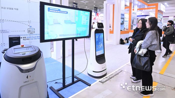 국내 최대 소프트웨어 전시회인 '소프트웨이브 2024'가 4일 서울 삼성동 코엑스에서 열렸다. 관람객이 한림대성심병원 부스의 취약환자돌봄 배송로봇에 대한 설명을 보고 있다. 박지호기자 jihopress@etnews.com |