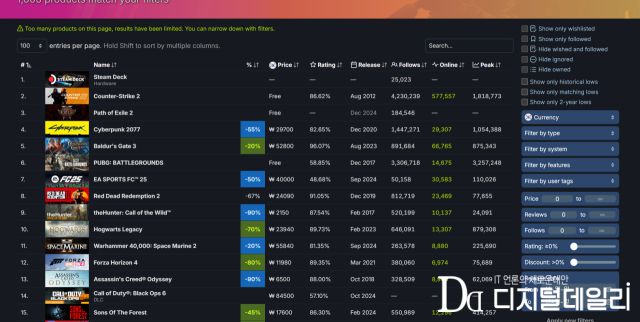 벌써부터 흥행 조짐도 관측된다. 스팀DB에 따르면 POE2는 4일 PC 게임 유통 플랫폼 스팀에서 글로벌 매출 순위 2위를 기록했다. 미국 등 서구권 국가에서는 인기 게임 1위를 달성했다. 얼리 액세스 접속에 필요한 서포터 팩 구매에 이용자들이 일제히 지갑을 열어서다.