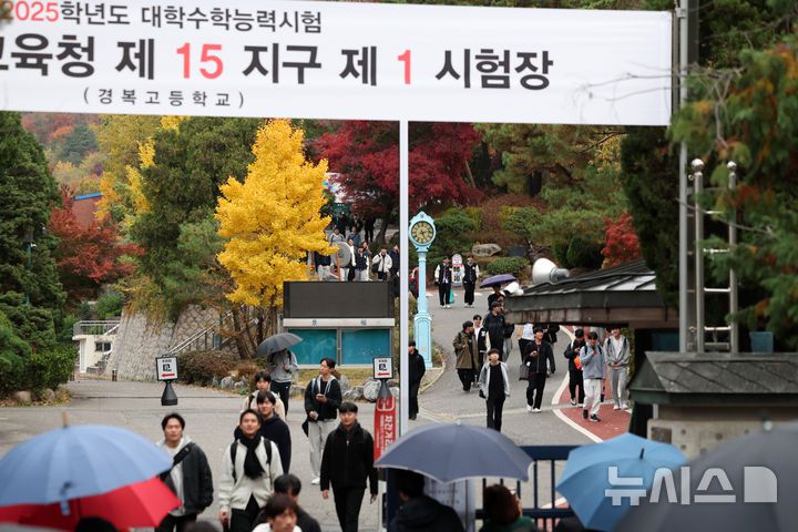 [서울=뉴시스] 김명년 기자 = 14일 오후 서울 종로구 경복고등학교에서 대학수학능력시험을 마친 수험생들이 고사장에서 나오고 있다. 2024.11.14. kmn@newsis.com |