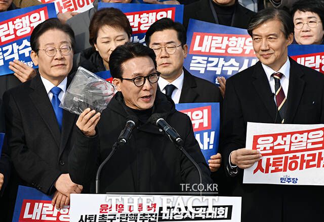 12.3 윤석열 내란 사태 특별대책위원회 위원장을 맡은 김민석 최고위원은 6일 국회 본청에서 긴급 기자회견을 열고 "내란 사태의 주모자와 공범들이 체포되지 않고 2차 계엄을 통한 재공세가 예견되는 매우 긴박한 내란 지속 상황"이라며 7대 요구사항을 발표했다.