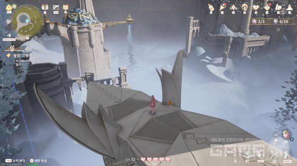 ▲거대한 종이학을 타고 한 바퀴 돈다. 인피니티 니키 /게임와이 촬영