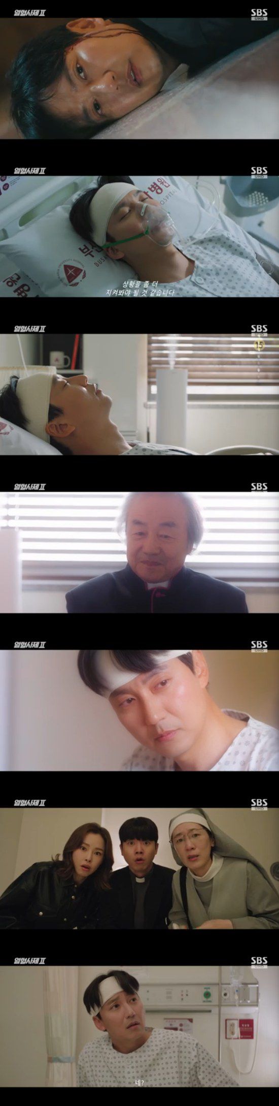 김홍식의 부한들과 몸싸움을 벌이다가 쓰러진 김해일은 의식이 돌아오지 않는 상태에서 죽은 이영준(정동환) 신부와 만나게 됐다.