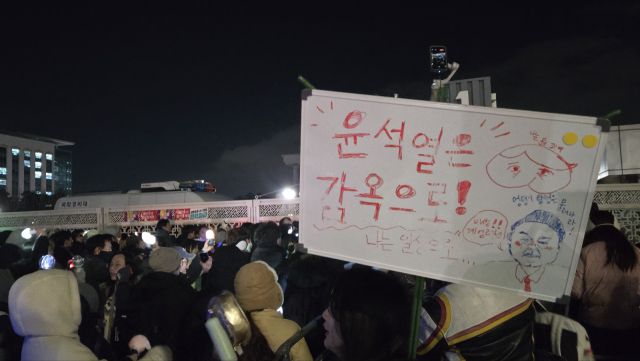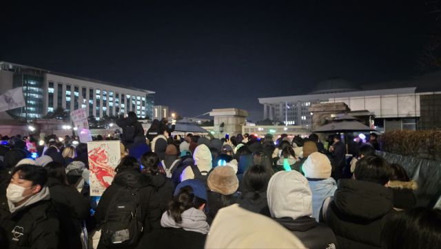 자정을 넘긴 이 시각에도 국회 앞에서는 윤석열 대통령 탄핵 시위가 이어지고 있다. 겨울밤의 냉기도 녹이는 집회 참가자들의 열기는 밤이 깊어질수록 뜨거워지고 있다.