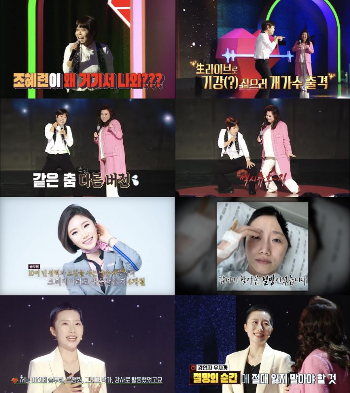 8일 방영되는 조혜련은 히트곡 '아나까나'를 라이브로 부르며 열정적인 무대를 선보이며 등장부터 스튜디오 분위기를 뜨겁게 달궜다. 그는 박미선, 장도연 등 동료 개그우먼들과 자신을 비교하며 느꼈던 불행과, 스스로를 괴롭혔던 과거를 돌아보며 "지금 생각해보면 내가 나를 너무 괴롭혔다"고 솔직하게 고백했다.