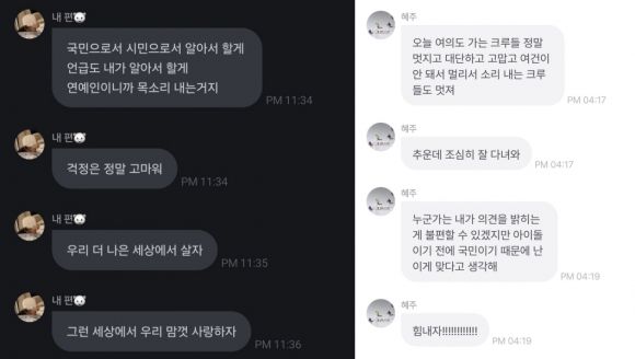 그러면서 “오늘따라 더 추운 것 같다. 따뜻한 봄이 얼른 왔으면 좋겠다. 봄이 올 때까지 서로 안아주고 응원하면서 잘 버텨보자”라며 “버티다 보면 봄이 올 거다. 혼자가 아니니까. 같이 응원해주고 같이 걸어주는 사람이 있으니까 포기하지 말자”라고 덧붙였다.