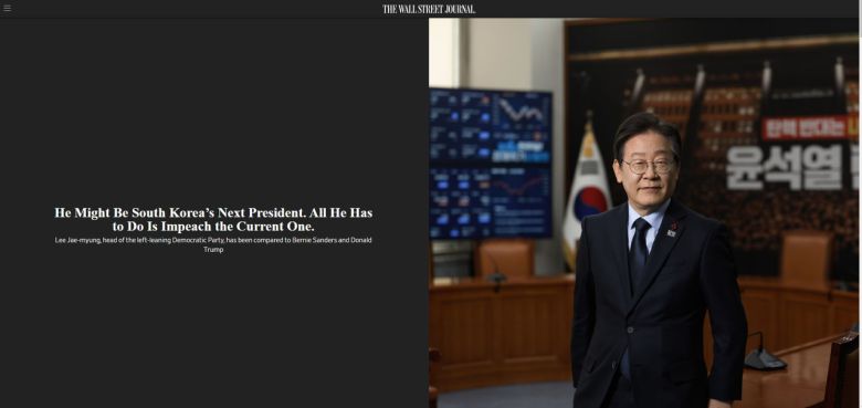 WSJ은 이 대표가 조기 대선에 따른 대선 출마 여부에 대해서는 언급하지 않았다고 전했다. 그러면서도 WSJ은 최근 여론조사를 인용하면서 이 대표가 차기 대통령직에 “매우 근접해 있다(within striking distance)”고 평가했다.
