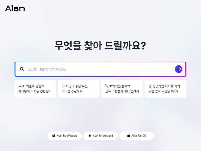 앨런은 포털과 AI 검색의 장점을 모두 담아, 검색 창과 하단의 대화형 검색 창을 통해 연속적인 검색을 지원한다. 실시간 이슈 검색어와 연관 검색어도 함께 제공돼 사용자의 편의성을 크게 향상시킨다.