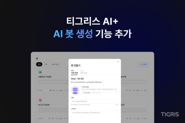 타이거컴퍼니가 지난달 출시한 채팅 기반 AI 협업 서비스 '티그리스 AI+'에 맞춤형 AI 봇 생성 기능을 추가했다.