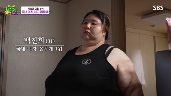 이날 국내 여자 몸무게 1위로 알려진 31살 백진희 씨의 일상이 영상을 통해 전해졌다.