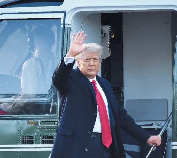 도널드 트럼프 미국 대통령이 2021년 2월 20일(현지 시각) 백악관에서 대통령 전용 헬기 마린원에 오르기 전 손을 흔들고 있다. /AFP 연합뉴스 |