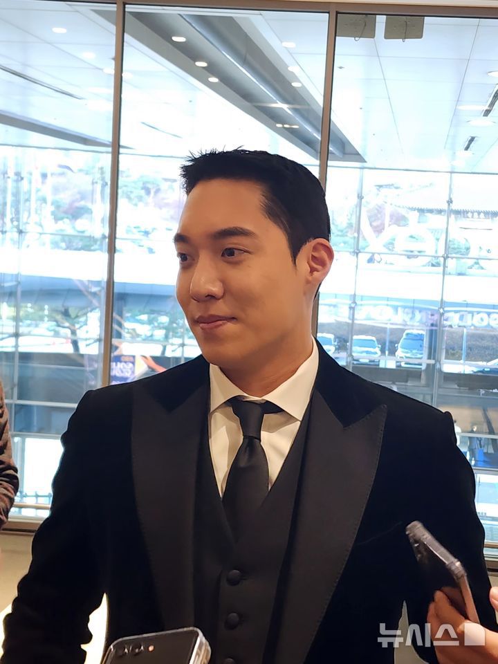 벨벳 소재의 검정색 정장에 넥타이도 검정색을 택한 원태인은 "가장 예뻐보이는 의상으로 골랐다. 올해 마지막이자 큰 시상식이라고 생각해 예쁜 것으로 골라봤다"고 전했다.