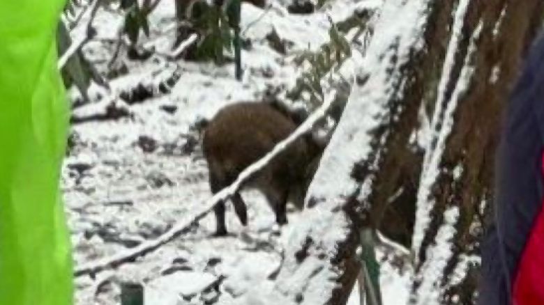 오늘(13일) 낮 2시쯤 한라산 성판악 탐방로 해발 900m 부근에서 멧돼지 어미와 새끼 등 4마리가 나타났습니다.