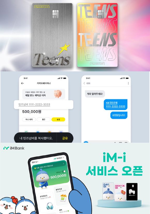 현대카드 Teens·카카오페이 틴즈넘버·iM뱅크 iM-i [사진=각 사] |