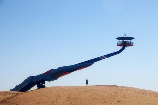 닝샤후이족자치구 중웨이에 위치한 사파두 사막 전망대 '비천'. 이용료 60위안. ⓒ최종명