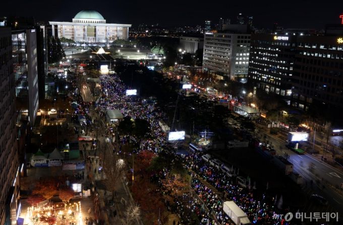 [서울=뉴시스] 조성봉 기자 = 윤석열 대통령에 대한 탄핵 소추안 표결을 하루 앞둔 13일 저녁 서울 여의도 국회의사당 앞에서 시민들이 윤석열 대통령 탄핵소추안 국회 통과 촉구 집회를 하고 있다. 2024.12.13. suncho21@newsis.com /사진=조성봉 |