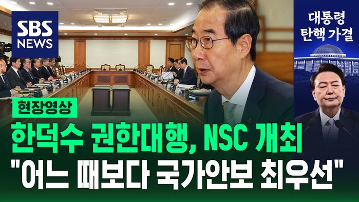한덕수 대통령 권한대행 국무총리가 오늘(14일) 정부서울청사에서 국가안전보장회의(NSC)를 개최하고 "이럴 때일수록 그 어느 때보다도 국가안보를 최우선시해야 한다"고 말했습니다. 한 권한대행은 "북한이 어떠한 도발도 획책할 수 없도록 빈틈없는 대비 태세를 유지하기를 바란다"며 "한 치의 안보 공백도 발생해서는 안 된다"고 강조했습니다. 관련 영상, 전해 드립니다.