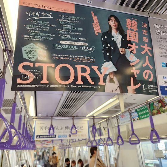 지난 3일 일본 한 지하철에서 한국 특집 잡지 광고가 붙어 있다. 한국 문화는 이제 일본인 일상 생활속에 뿌리내리고 있다.오누키 도모코 특파원