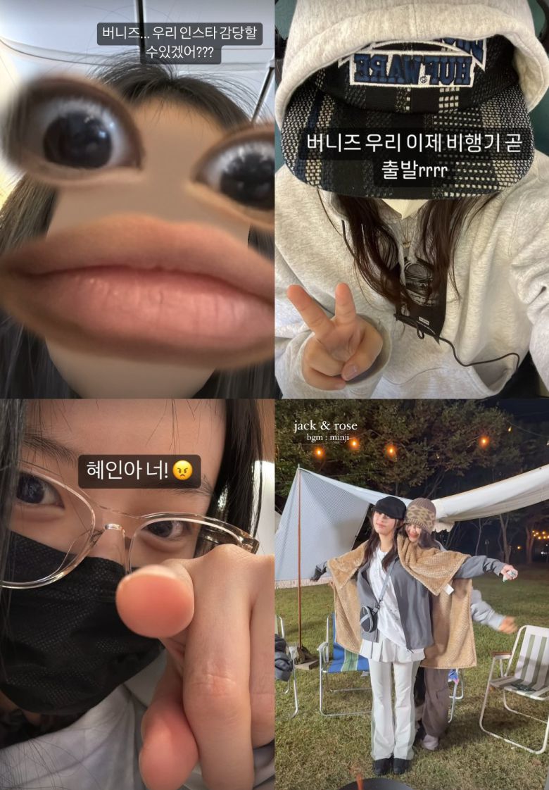 해린은 "안녕"이란 글과 비행기를 탄 자신의 모습, 어린 시절 모습을 공유했으며 하니 또한 "hanni pram"이라는 글과 함께 자신의 사진첩을 공유했다.
