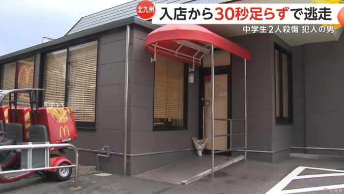 교도통신 등 현지 언론에 따르면 지난 14일 저녁 8시경 후쿠오카현 기타큐슈시에 있는 한 맥도날드 점포에서 중학생 2명이 40대로 추정되는 신원미상의 남성이 든 흉기에 찔렸다. 복부를 찔린 여학생은 과다출혈로 현장에서 사망했고 남학생은 허리부근을 찔려 크게 다쳤지만 생명에 지장은 없는 것으로 알려졌다.