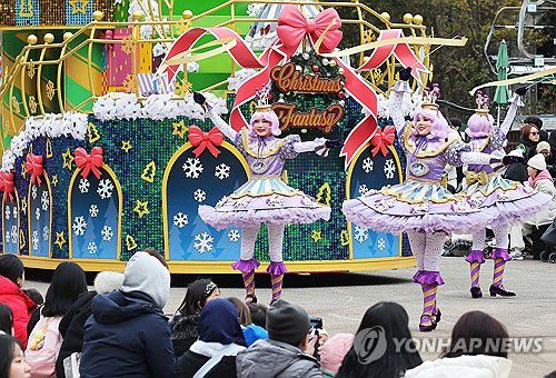 (용인=연합뉴스) 홍기원 기자 = 크리스마스를 아흐레 앞둔 16일 오후 경기도 용인시 에버랜드에서 '블링블링 X-mas 퍼레이드'가 펼쳐지고 있다. 2024.12.16