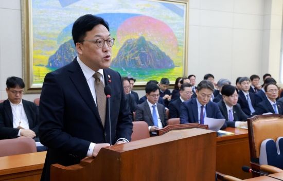 김병환 금융위원장이 18일 국회 정무위원회에서 열린 금융당국에 대한 긴급 현안질의에서 현안보고를 하고 있다. 김현민 기자 |