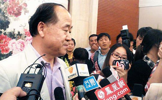 2012년 노벨문학상 수상자로 선정된 소설가 모옌(莫言)이 11일 오후 고향인 중국 산둥성 가오미현에 몰려든 기자들과 인터뷰하고 있다. 모옌은 중국 국적 작가로는 최초로 노벨문학상 수상의 영예를 안았다. /조선일보DB |