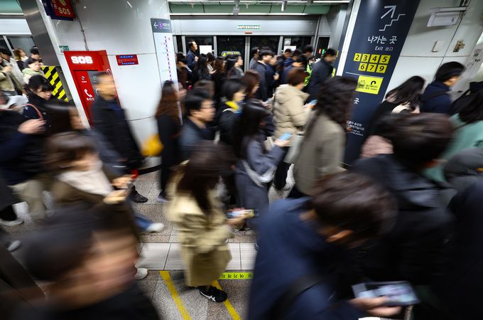서울 지하철 5호선 광화문역이 출근길에 오른 시민들로 혼잡한 모습을 보이고 있다. 뉴시스 |