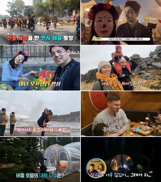 배를 채운 이해리X미겔은 축제의 하이라이트인 ‘죽은 자들의 날 퍼레이드’ 관람을 시작했다. 무려 100만 명이 운집한 현장에는 해골 여인, 전사 해골, 거대 인형 해골, 해골 군악대 등 온갖 해골들이 등장한 가운데, ‘태권 해골’까지 퍼레이드에 참여해 애국심을 끌어올렸다.