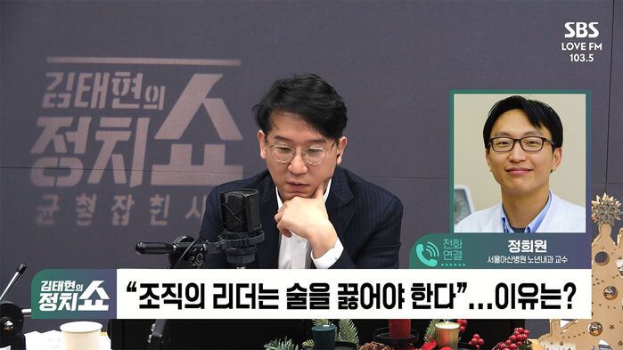 ▷김태현 : 제가 그걸 봤거든요. 제목이 "조직의 리더는 술을 끊어야 한다." 그런데 왜 하필 리더를 콕 집어서 말씀하신 거예요?