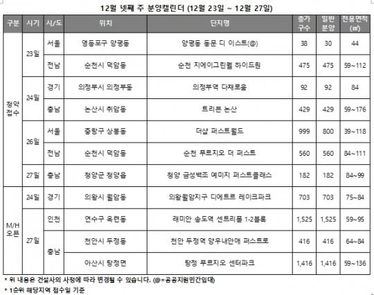 12월 4주 분양캘린더 / 자료제공=리얼투데이 |