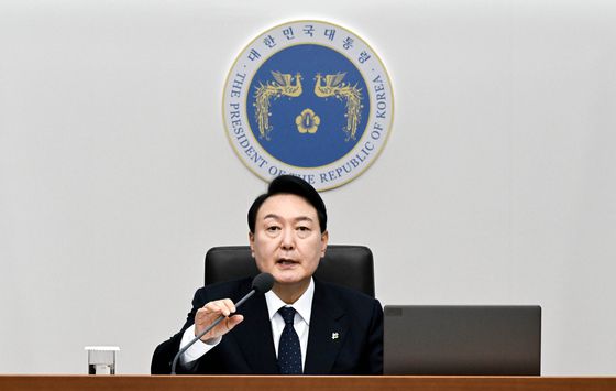 윤석열 대통령이 2022년 6월 21일 서울 용산 대통령실 청사 영상회의실에서 열린 국무회의에서 발언하고 있다. 윤 대통령은 당시 공공기관 혁신을 강조했다. 뉴스1 |