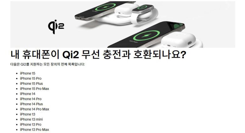 애플 역시 맥세이프를 강제하지 않고, Qi2를 통해 무선충전 시장이 성장하도록 기여 중이다. 이미 2023년 출시한 아이폰 15 및 15 프로가 맥세이프와 Qi2를 모두 지원하는데, 사실 이론만 따지고 보면 맥세이프를 지원하는 아이폰 12 이후 기종 모두 Qi2 규격에 대응한다고 봐도 무방하다. 벨킨 역시 ‘맥세이프’와 ‘마그네틱’으로 구분했던 제품 라인업을 Qi2로 정식 분류하고 신제품을 대거 출시하고 있다.