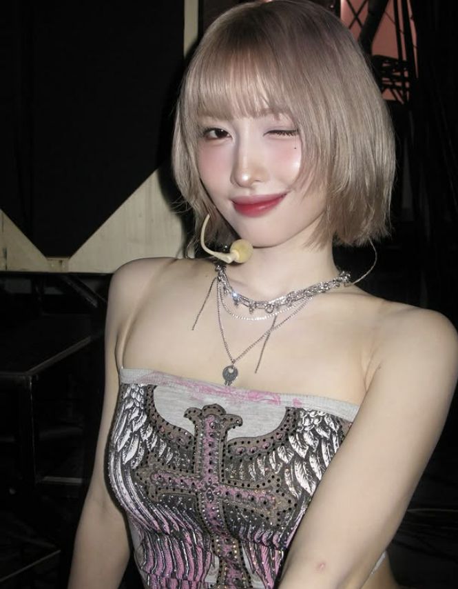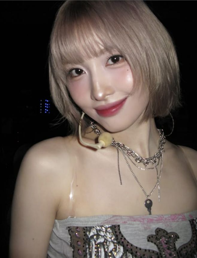 특히 여러 개의 실버 체인 목걸이로 스타일링을 마무리해 강렬하면서도 섬세한 매력을 자아냈다. 또 자연스러운 에쉬 블론드 컬러와 모모의 시그니처인 단발 헤어 스타일링이 잘 어울어져 그의 미소를 더욱 빛나게 만들었다.