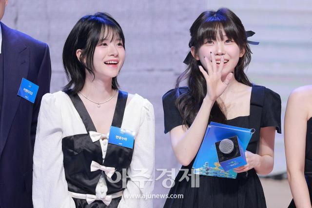 28일 오후 서울 마포구 에스플렉스센터 상암 콜로세움에서 열린 '2024 SOOP(숲) 스트리머 대상' 시상식에서 안녕수야(왼쪽)과 우정잉이 참석해 기념촬영을 하고 있다. 2024.12.28