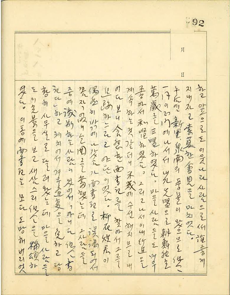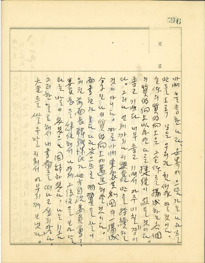 전체(全體)의 질적 향상은 그 전체를 구성하는 각개(各個)의 질적 향상 이외엔 다른 첩경이 없을 것이다. 좋고 기쁘다. 너무 좋고 기뻐서 아주 미칠 지경이다. 그러나 언제까지나 이 흥분만을 지속할 것이 아니다. 하루바삐 동진(東震)공화국의 한 구성분자인 나의 질적 향상에 매진해야 할 것이다.