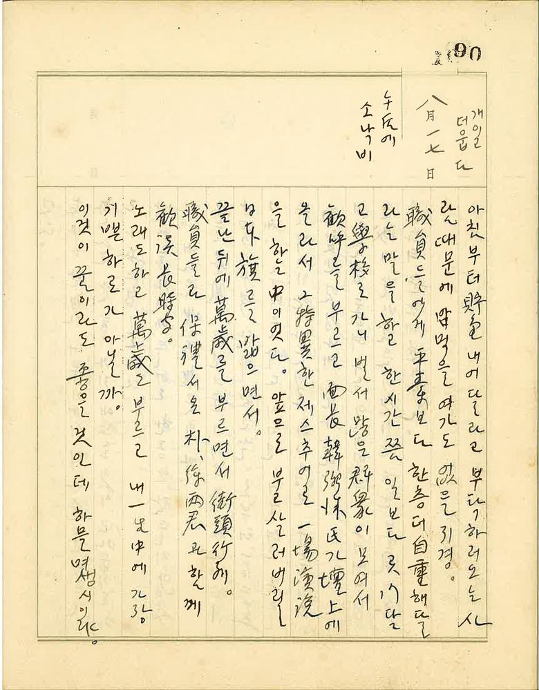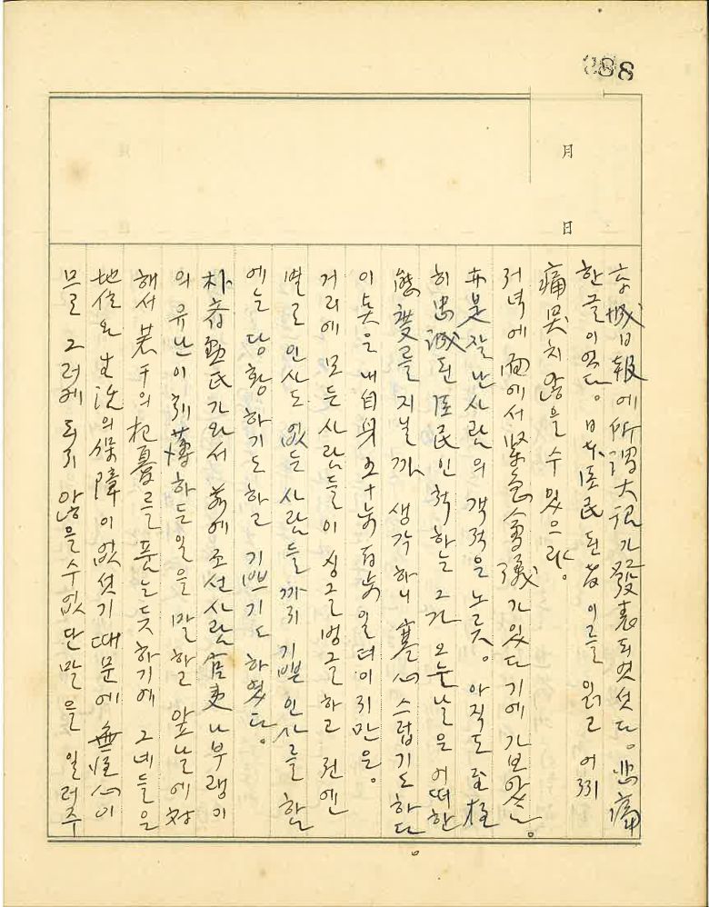 경성일보에 소위 대조(大詔)가 발표되었었다. 비통한 글이었다. 일본 신민 된 자 이를 읽고 어찌 통곡치 않을 수 있으랴.