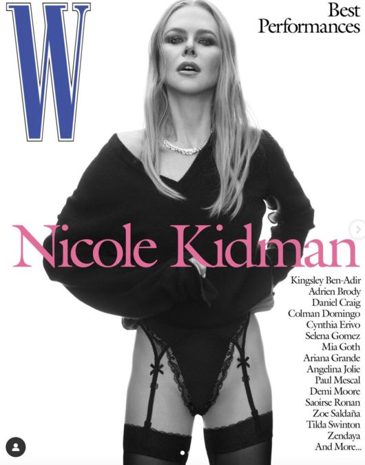 호주 출신 키드먼은 최근 W 매거진의 '그레이트 퍼포먼스' 표지에 등장했다. 사진 속 키드먼은 가터벨트를 착용한 채 나이를 잊은 뇌쇄적인 매력을 선보인다.